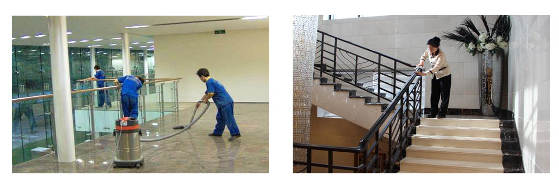 1. 公共區域清潔:每日清掃大堂、走廊、樓梯的地面,擦拭扶手、欄桿,確保無灰塵、污漬、雜物堆積。