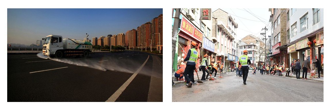 1. 道路清掃:對城市主次干道、背街小巷開展機(jī)械化清掃和人工清掃。機(jī)械化清掃車?yán)盟⒚⑽鼔m裝置等,